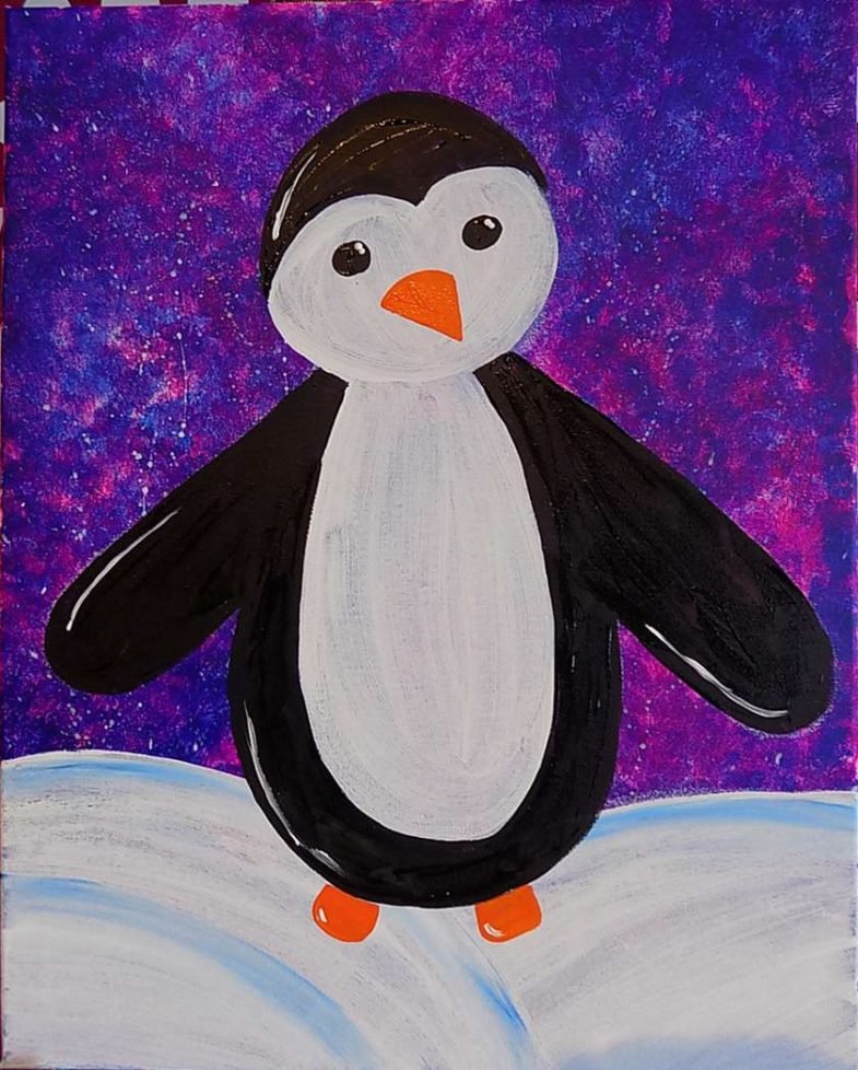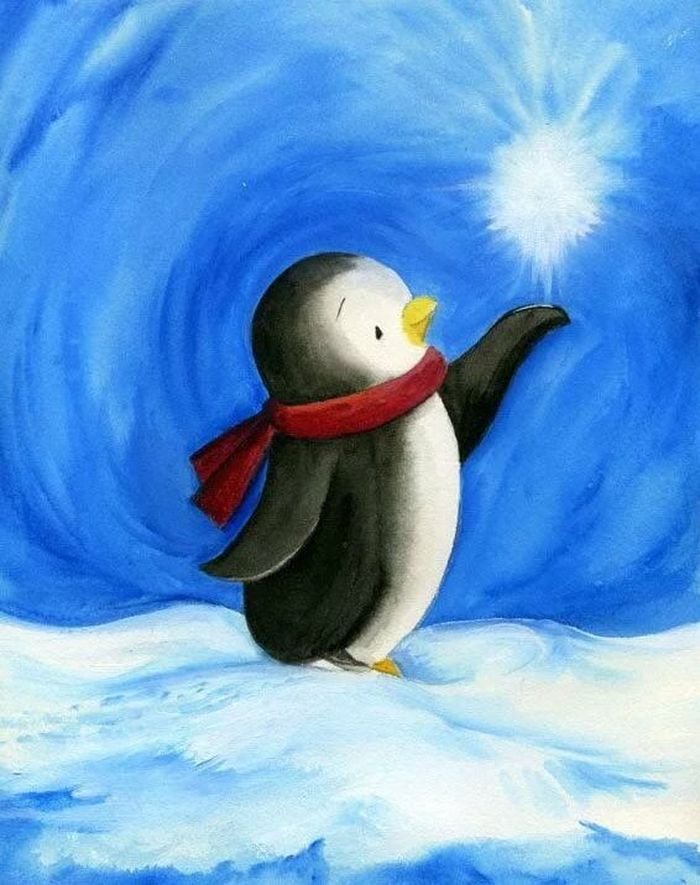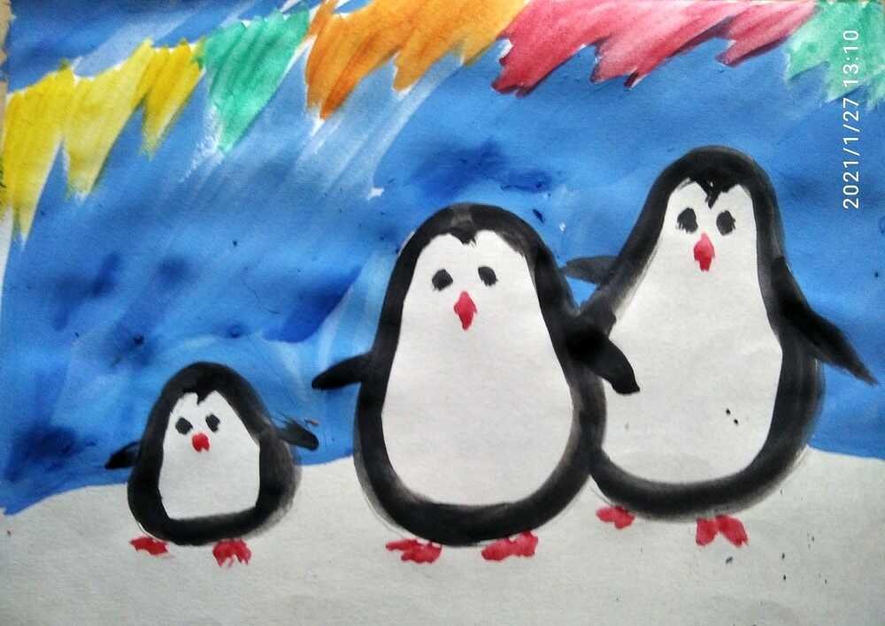 Рисование пингвина красками