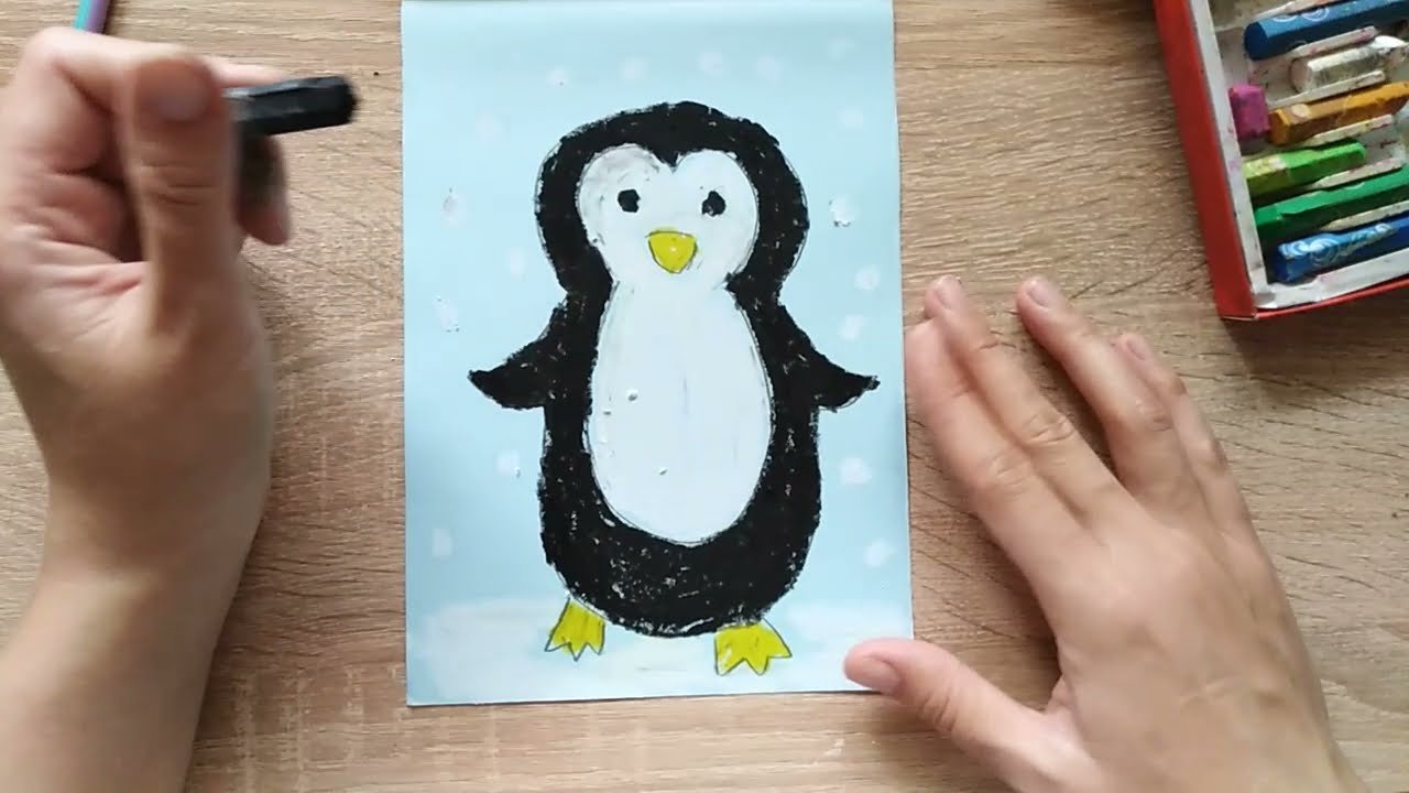Рисование мелками пингвина