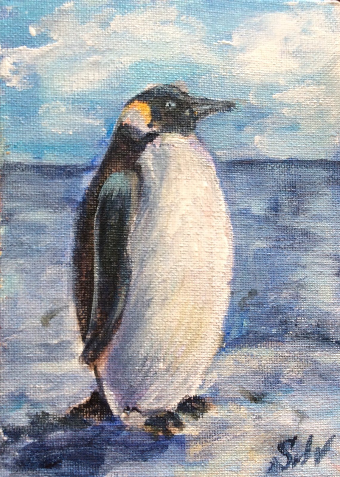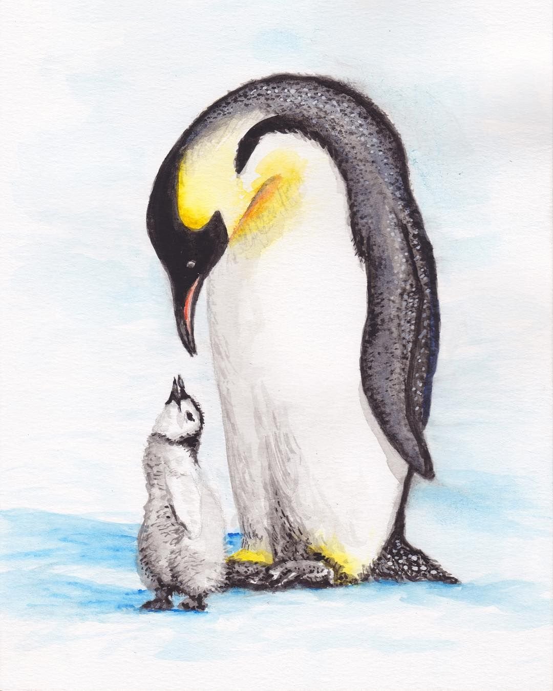 Пингвиненок акварелью