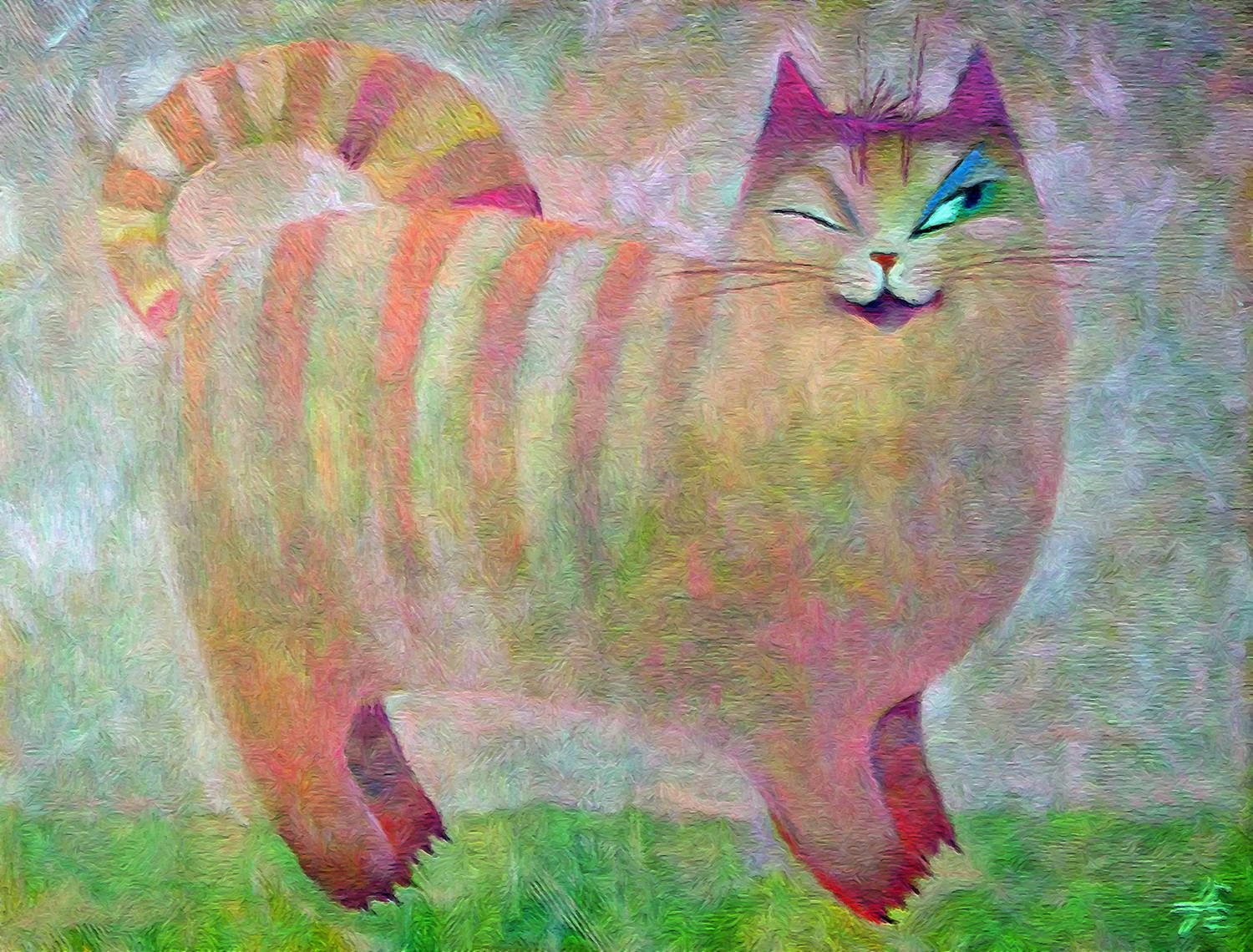 Разноцветный полосатый кот