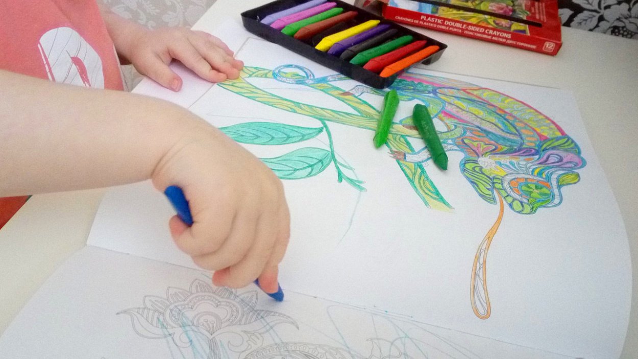 Рисунки пластиковыми мелками на бумаге