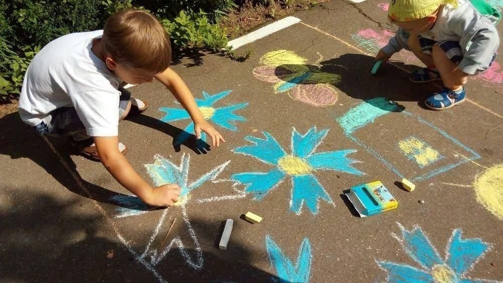 Рисование мелками на асфальте в детском саду