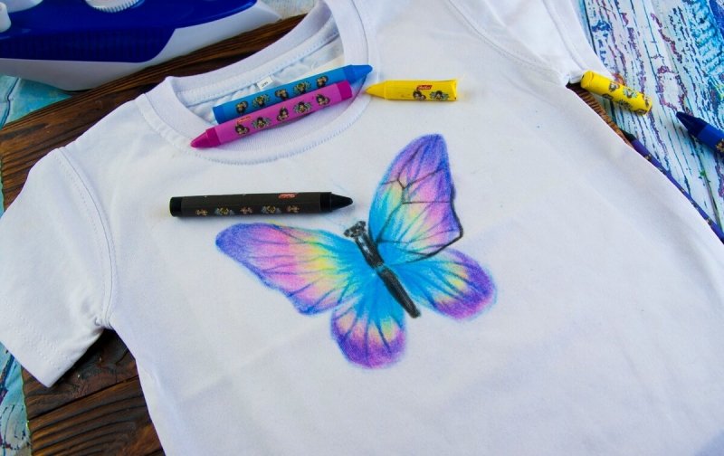 Восковые мелки на футболке