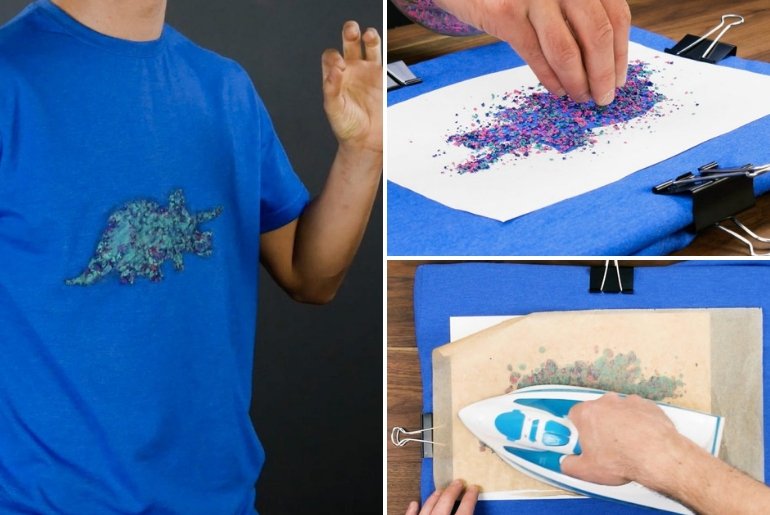 Восковыми мелками на футболке