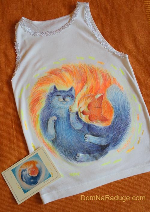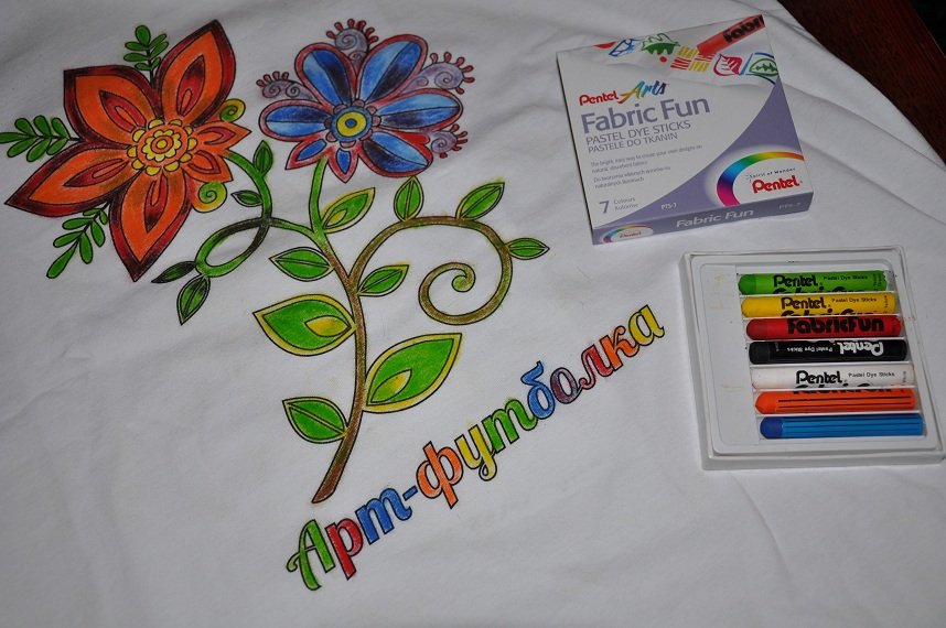 Рисунок на футболке восковыми карандашами