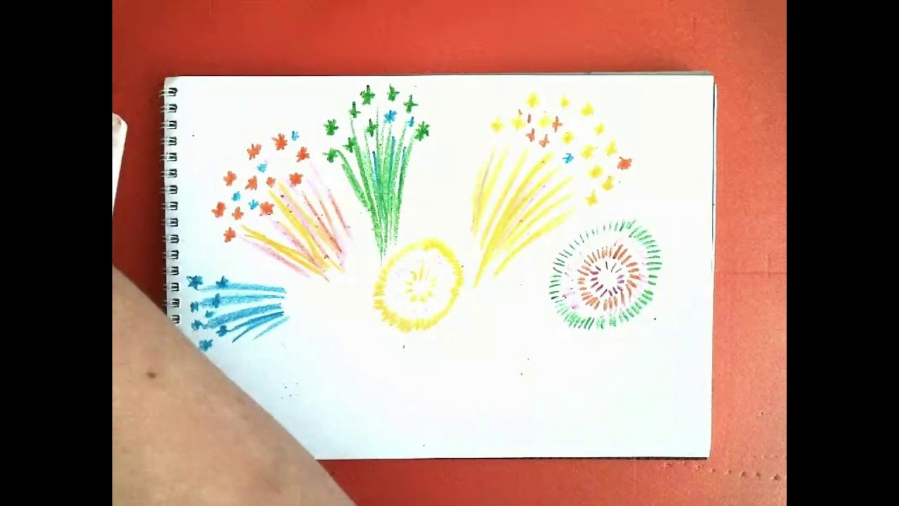 ![Рисование восковыми мелками салют]()