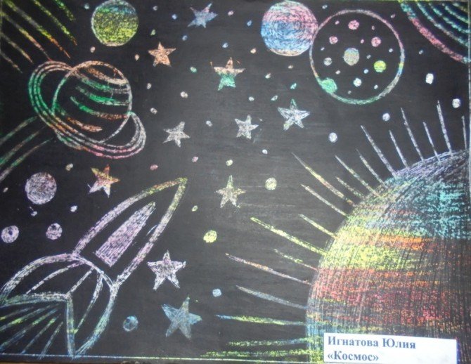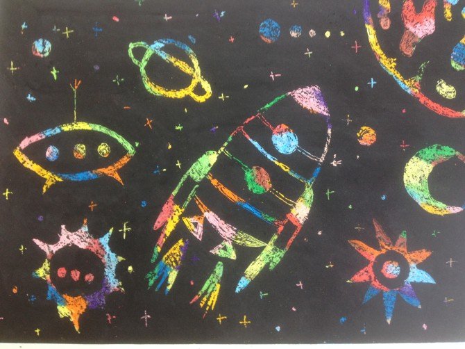Граттаж техника рисования для детей космос