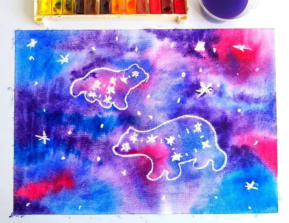 Рисование звёздного неба свечой и акварелью