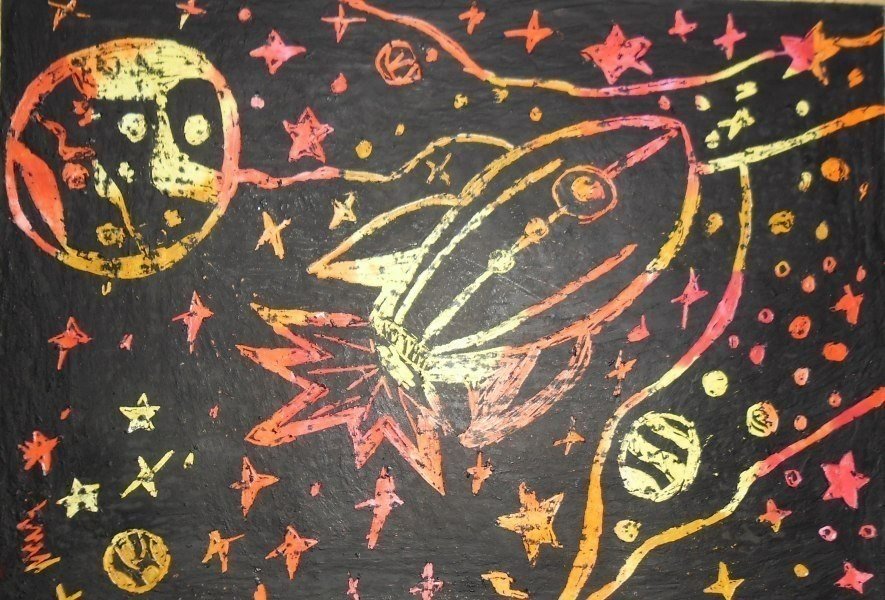 Техника граттаж космос