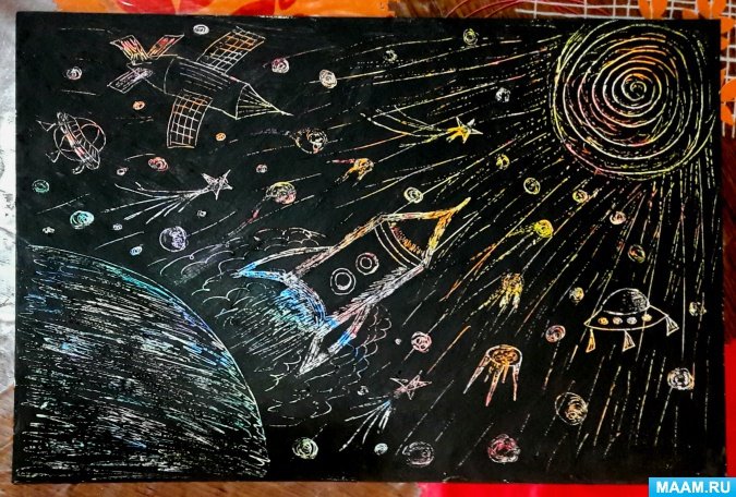 Граттаж космос подготовительная группа