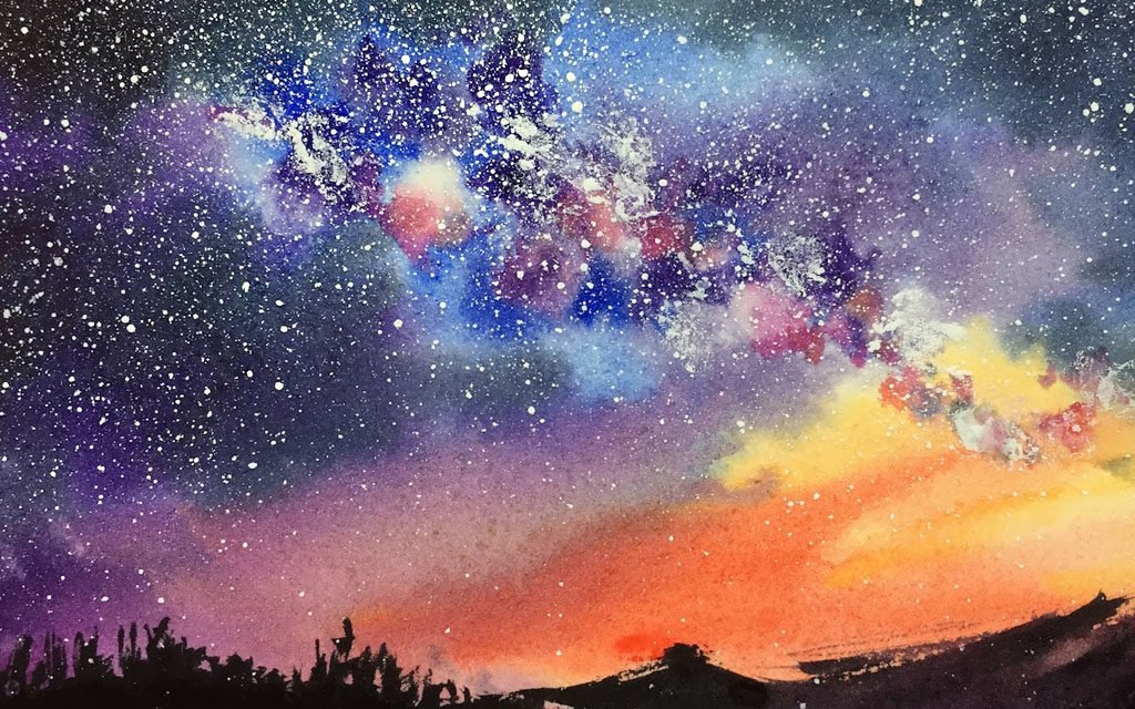 Ночное небо акварелью