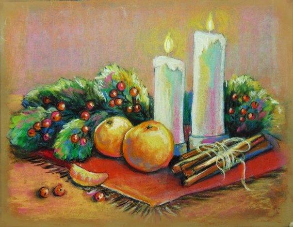 Новогодние картины пастелью