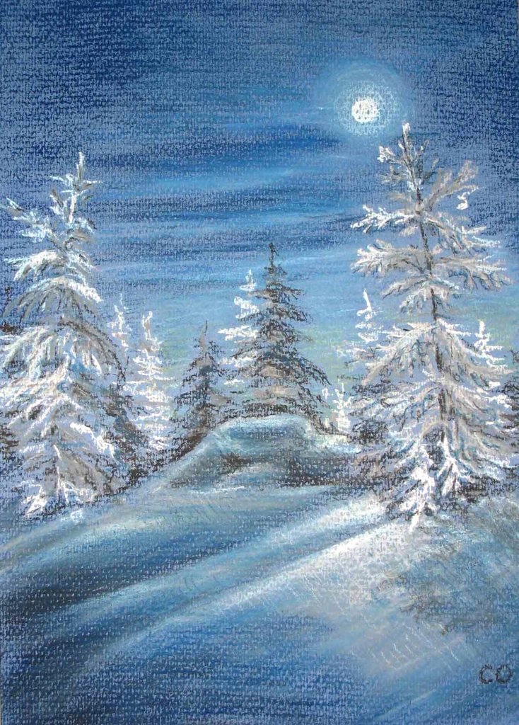 Новогодний пейзаж пастелью