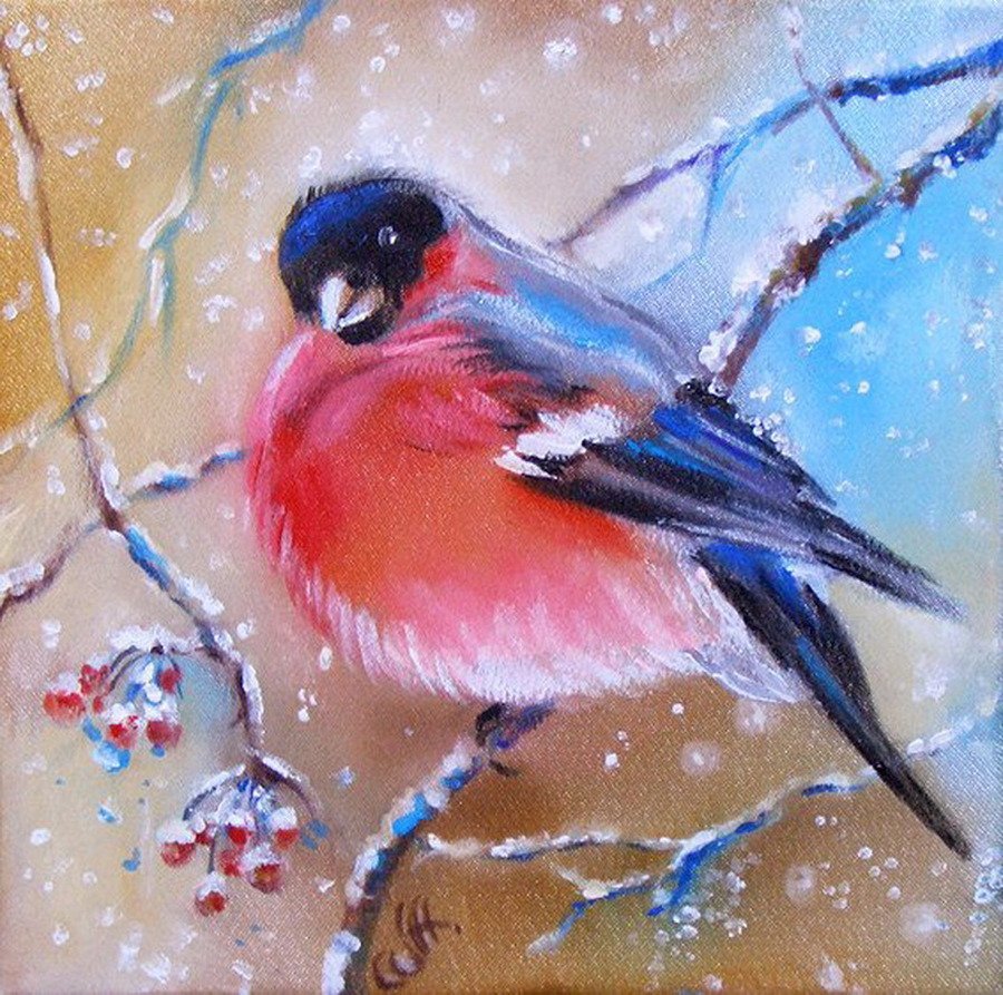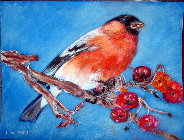 Снегирь пастелью