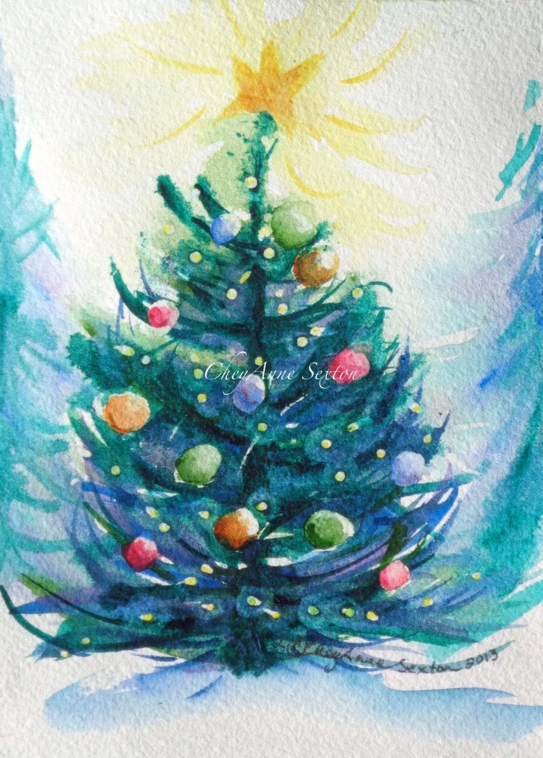 Новогодняя елка акварель