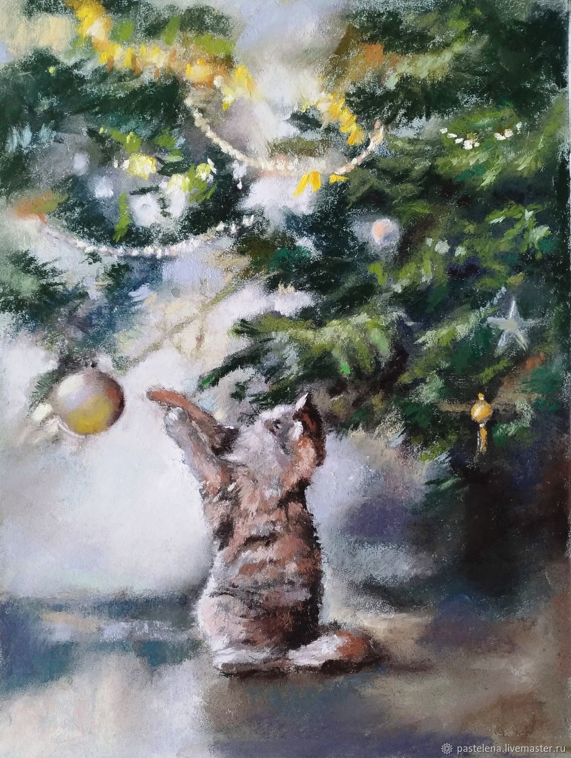 Новогодняя елка пастелью