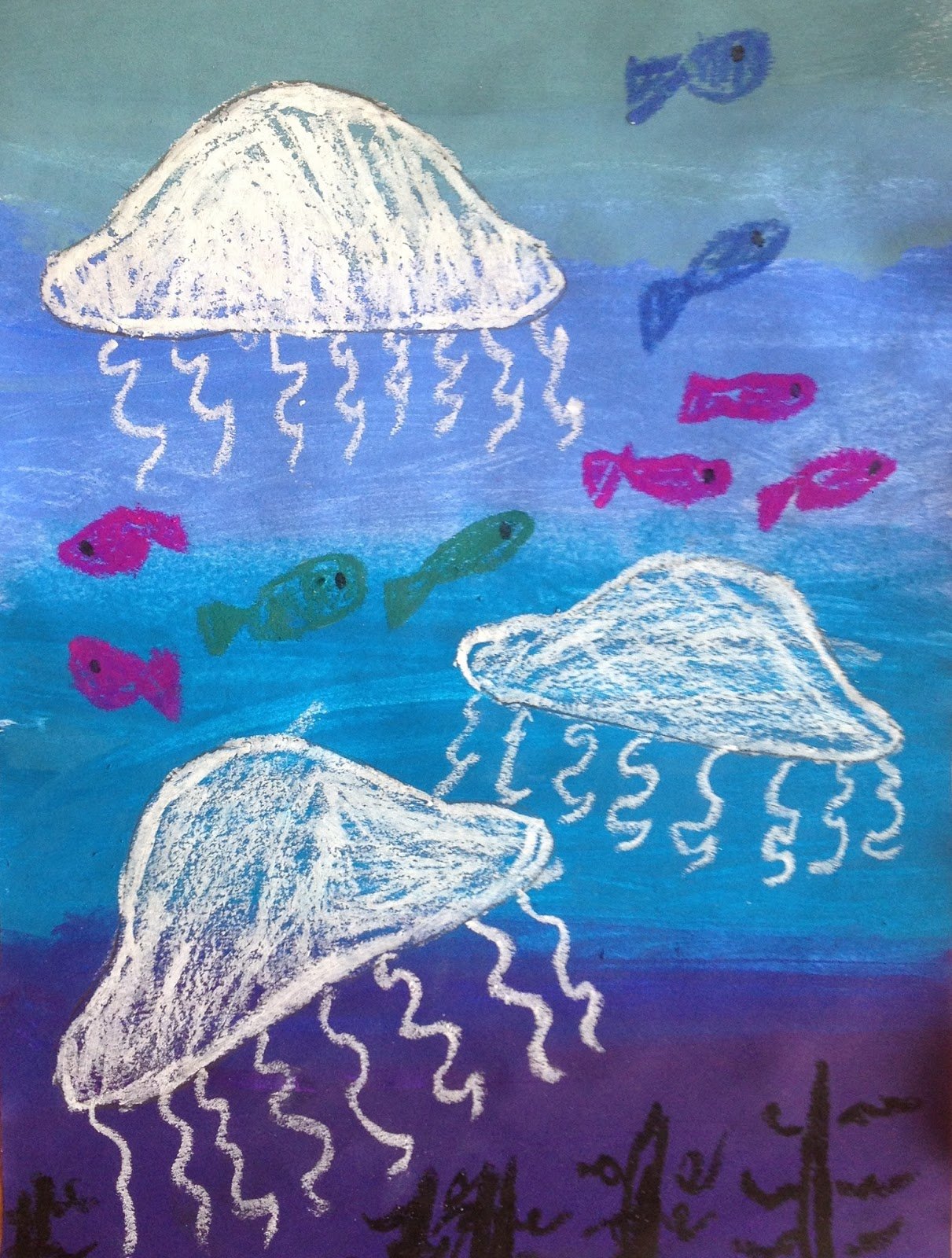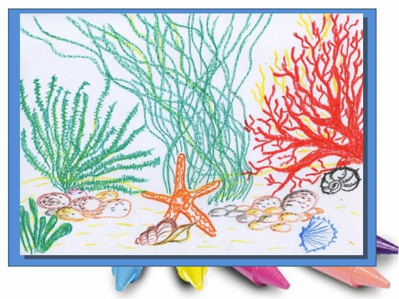 Подводный мир восковыми мелками и акварелью