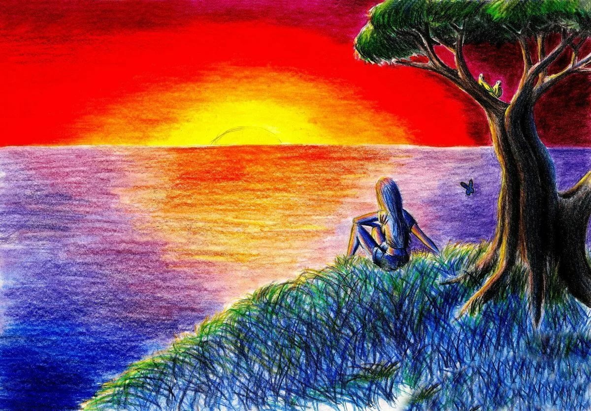 Закат рисунок карандашом