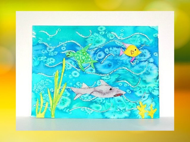 Подводный мир восковые мелки акварель