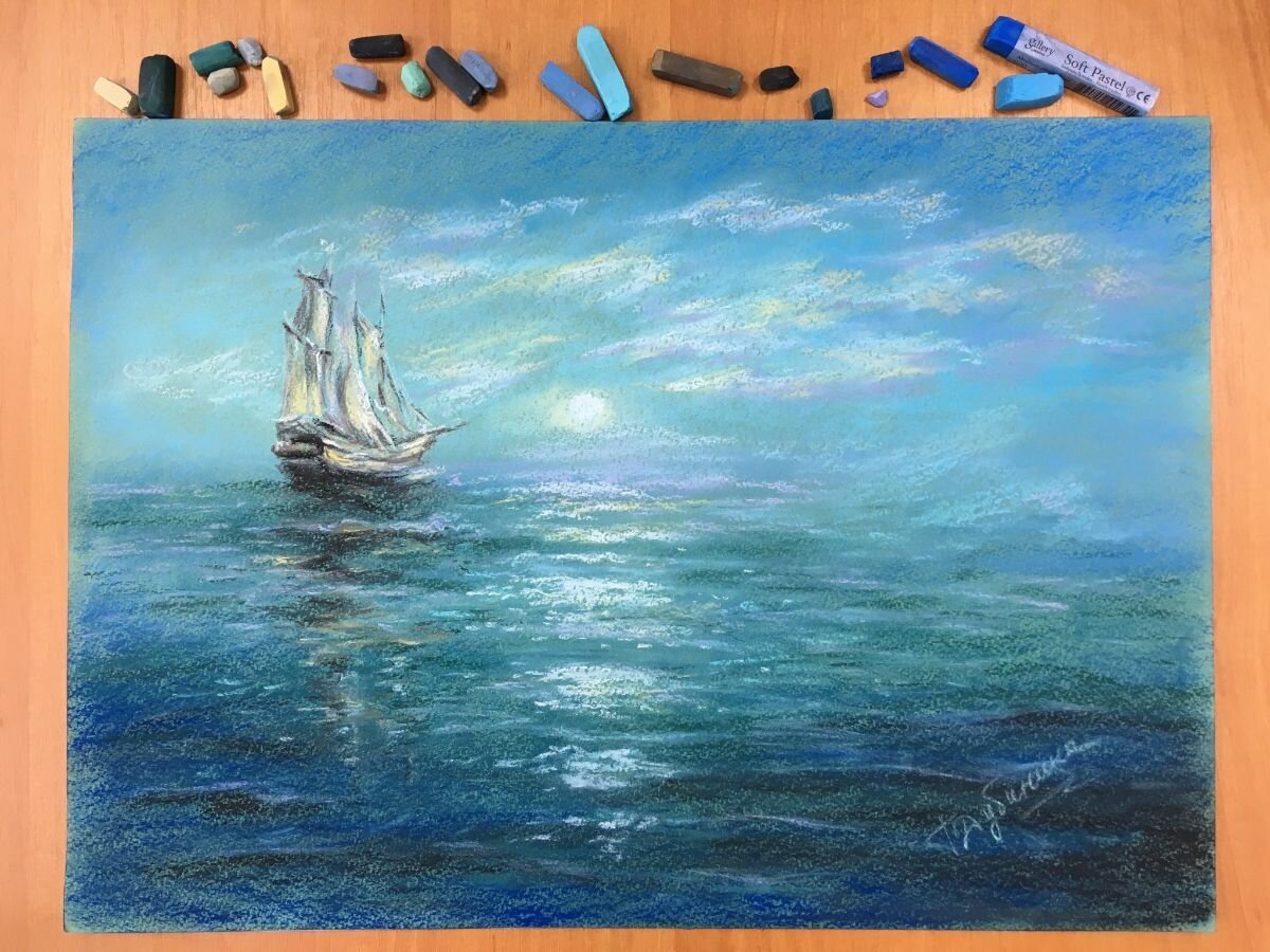 Морской пейзаж пастелью