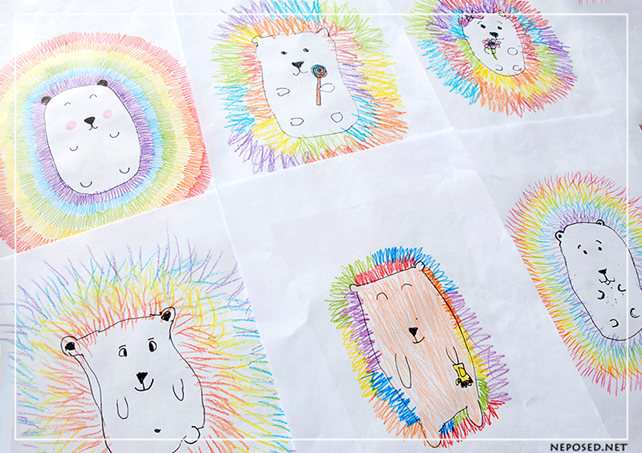 Ежик восковыми мелками