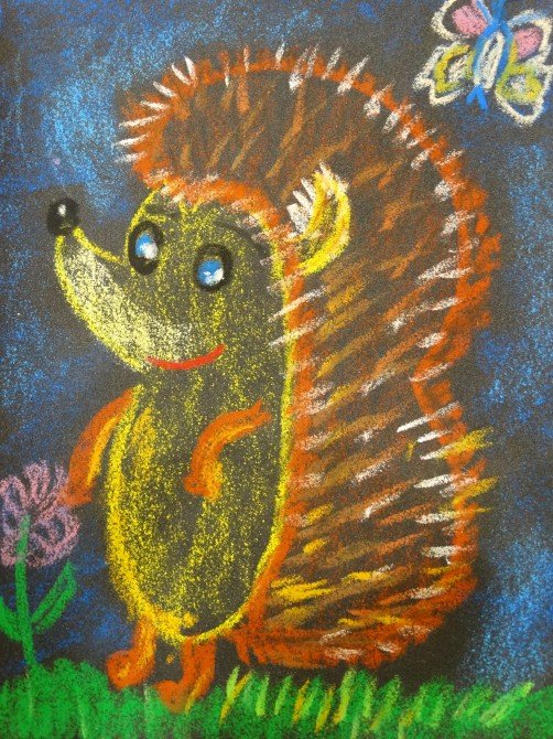 Рисование ежика в старшей группе мелками