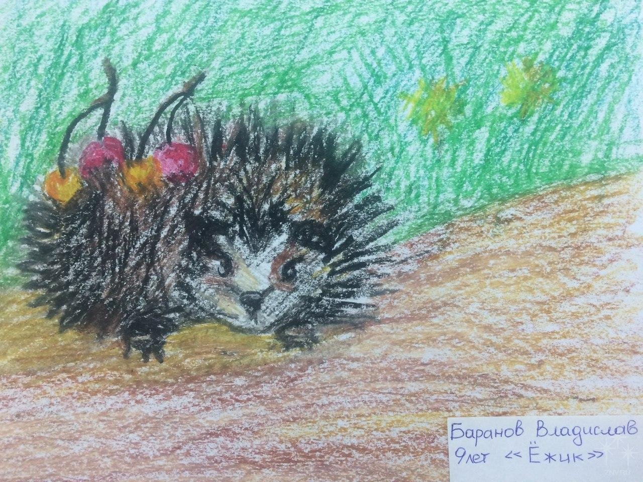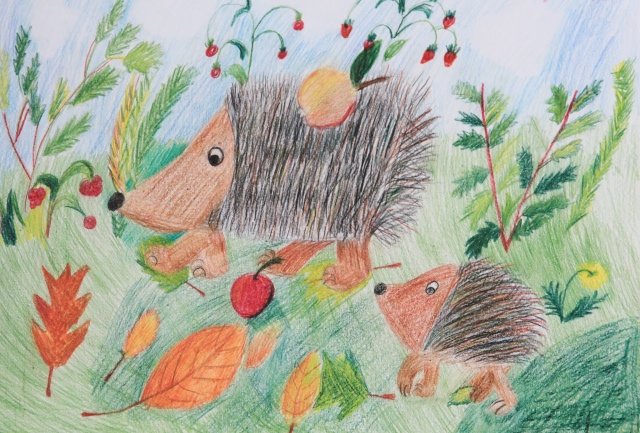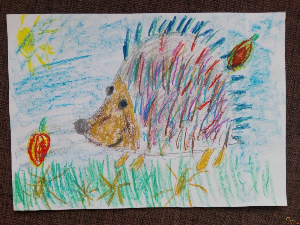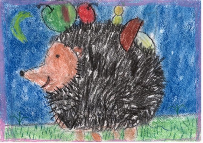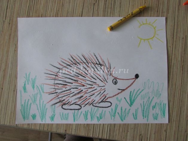 Рисунок еж восковые мелки