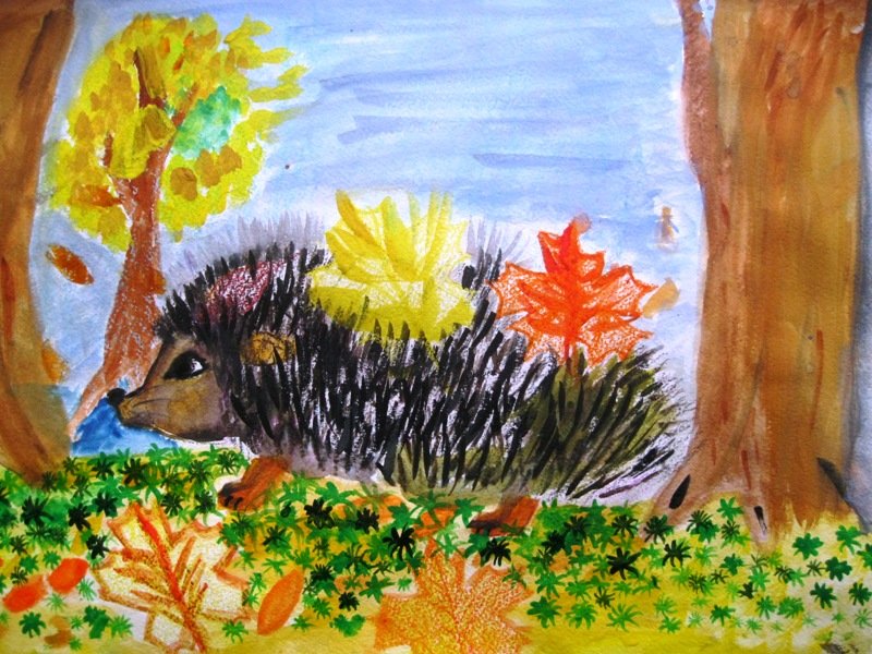 Рисование в подготовительной группе Ежик осенью