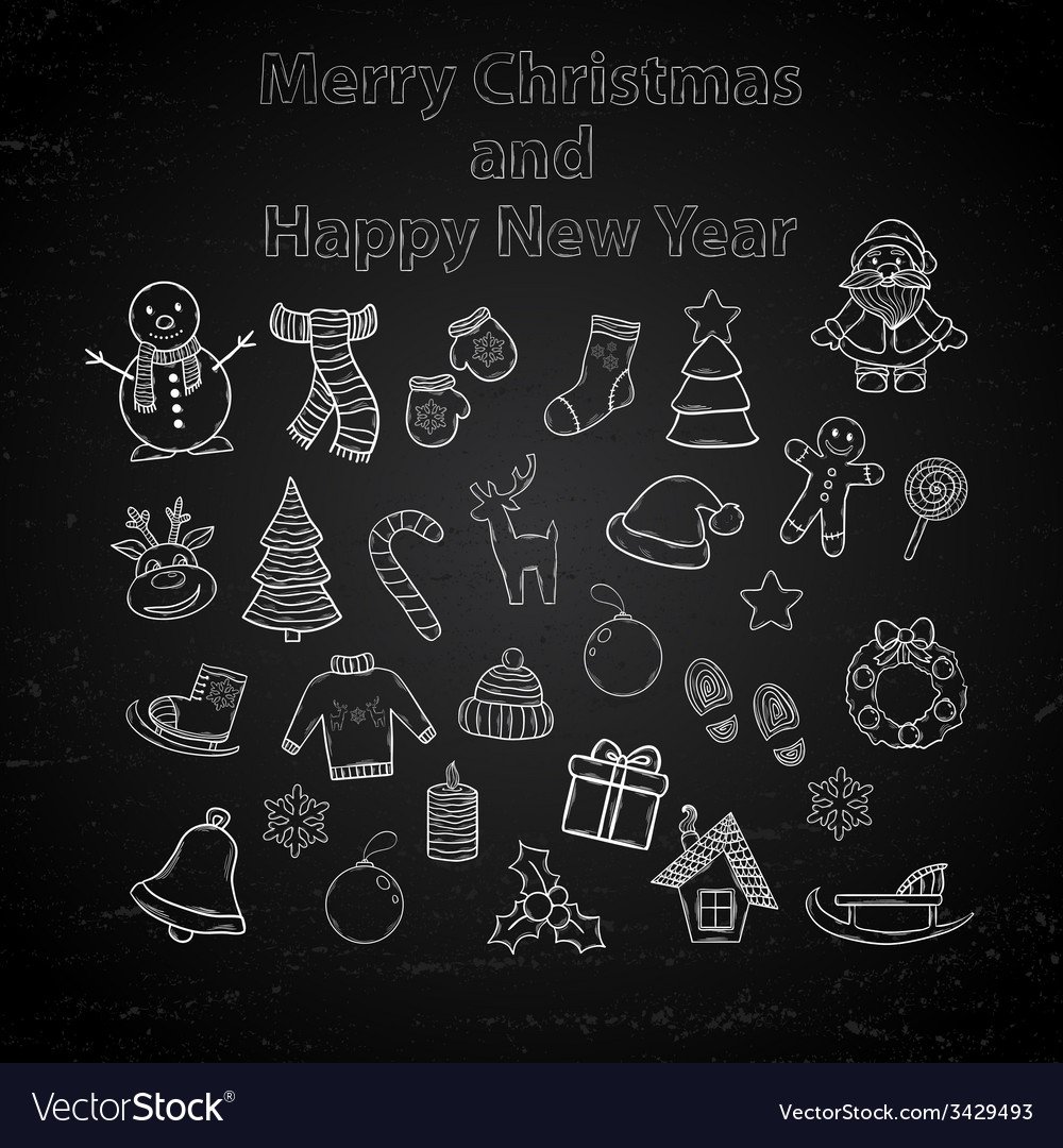 ![Новогодние игрушки на меловой доске]()