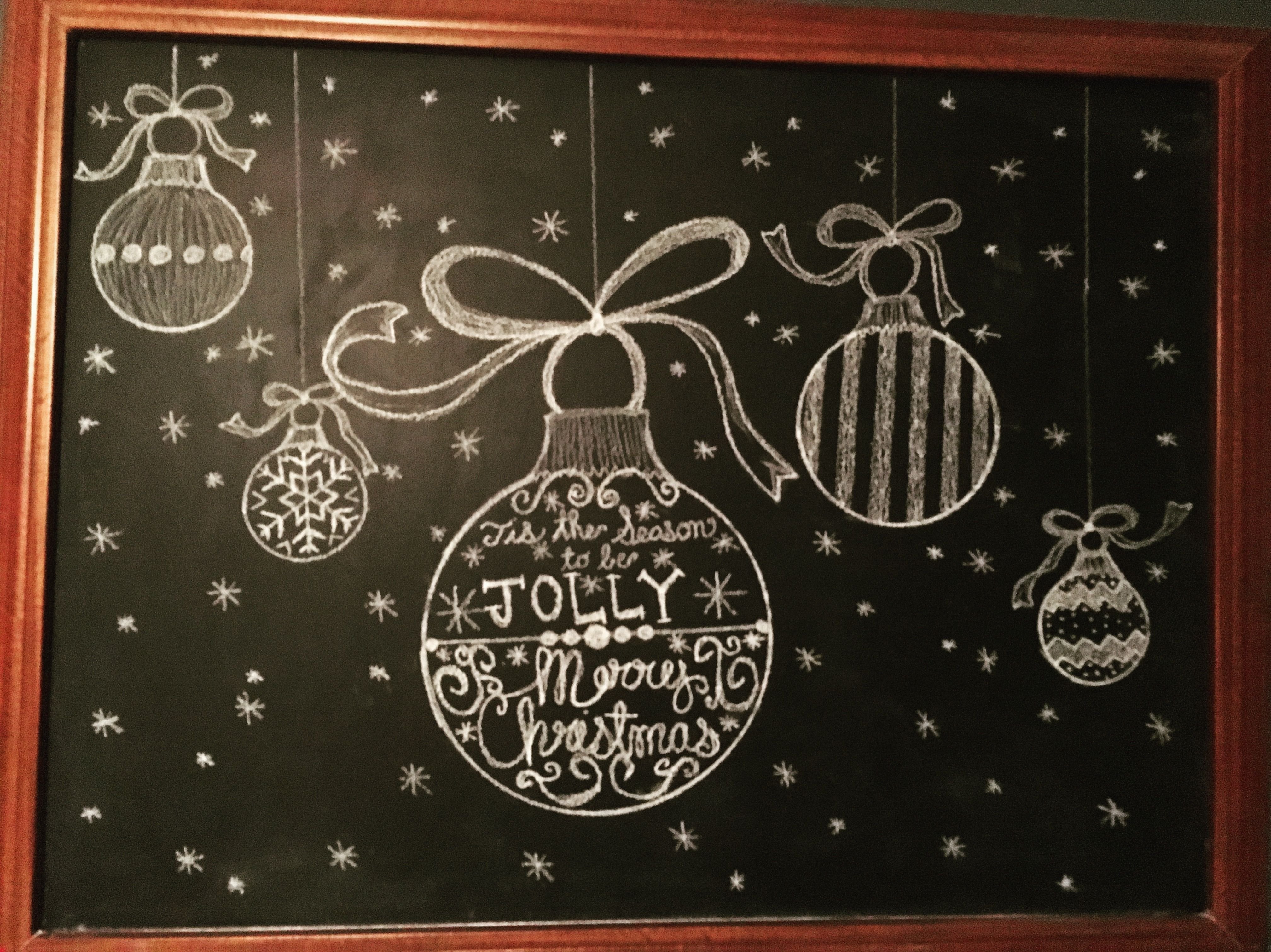 ![Новогодние украшения мелом на доске]()