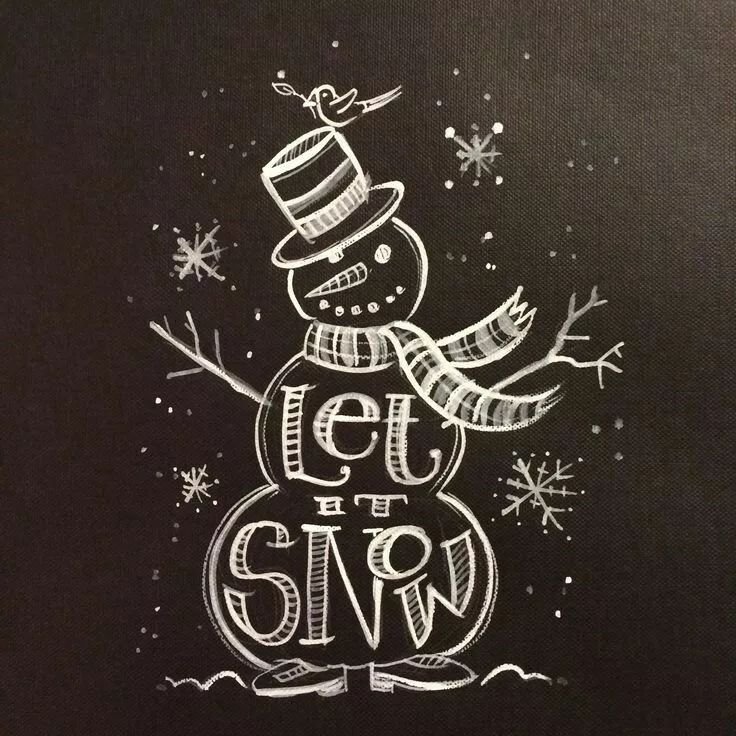Зимний рисунок мелом на доске