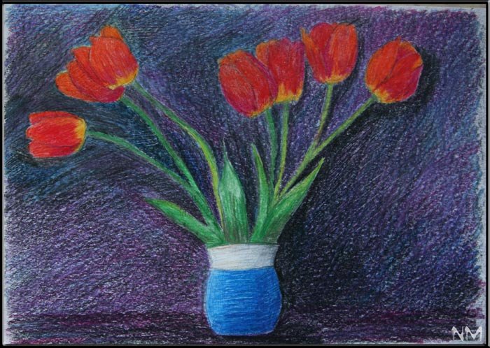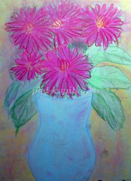 Натюрморт с цветами – прекрасный рисунок, выполненный при помощи восковых мелков. В этой работе художник передает красоту и свежесть цветов, создавая яркие и насыщенные оттенки. Использование восковых мелков позволяет достичь особой текстуры и глубины изображения, добавляя живости и объемности каждому элементу композиции. Результатом является эффектное произведение искусства, которое способно оживить любой интерьер и подарить радостные эмоции.