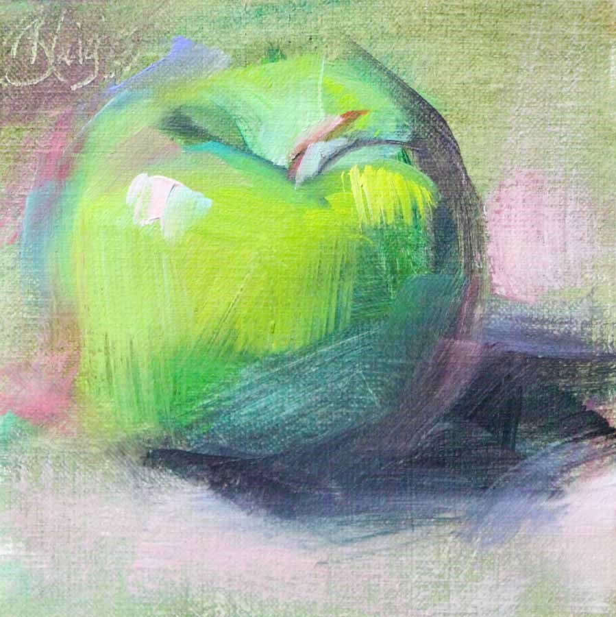 Зеленое яблоко пастелью