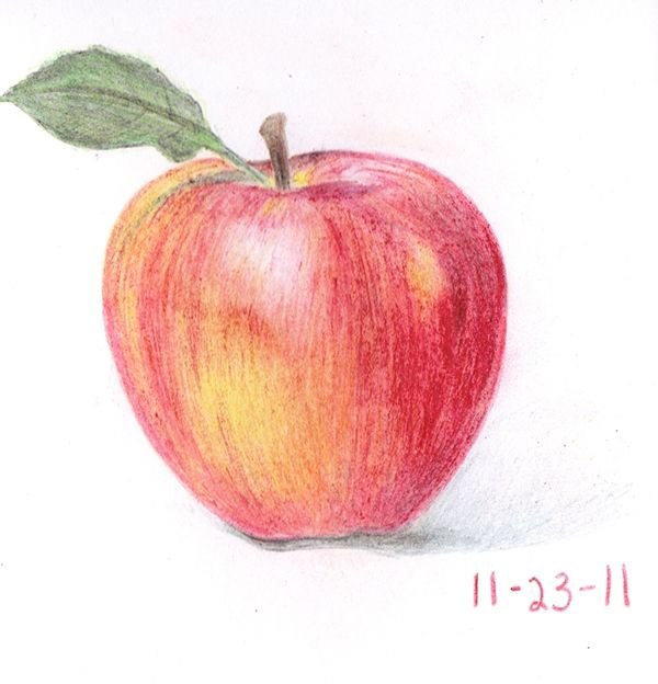 Яблоко цветными карандашами