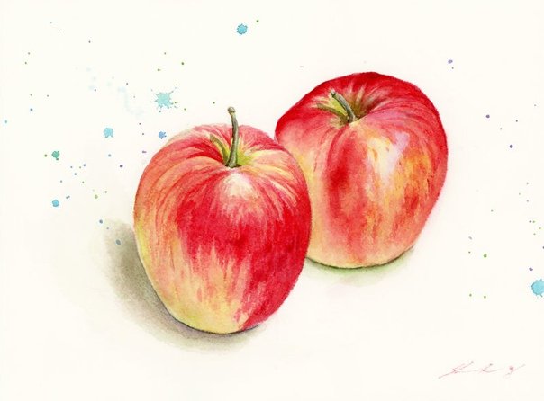Елена Базанова акварель яблоки