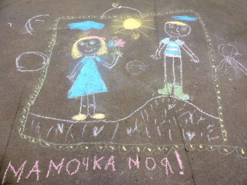 Рисунок ко Дню матери мелками