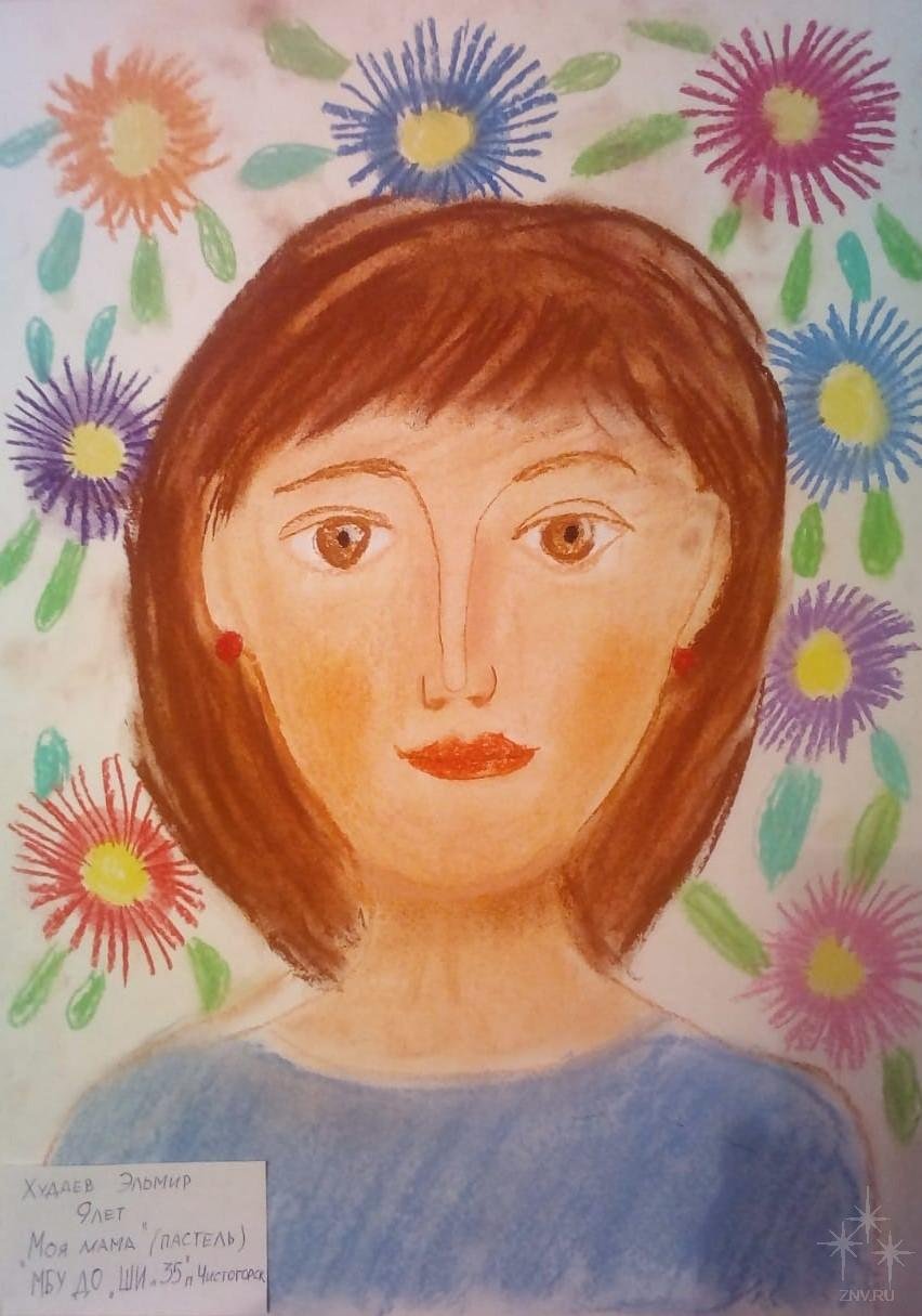 Портрет мамы детский пастелью