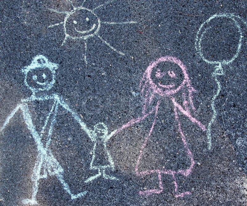 Рисунки на асфальте мелками семья