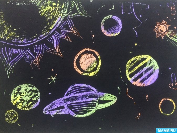 Техника граттаж космос для дошкольников