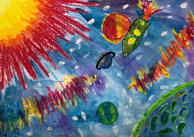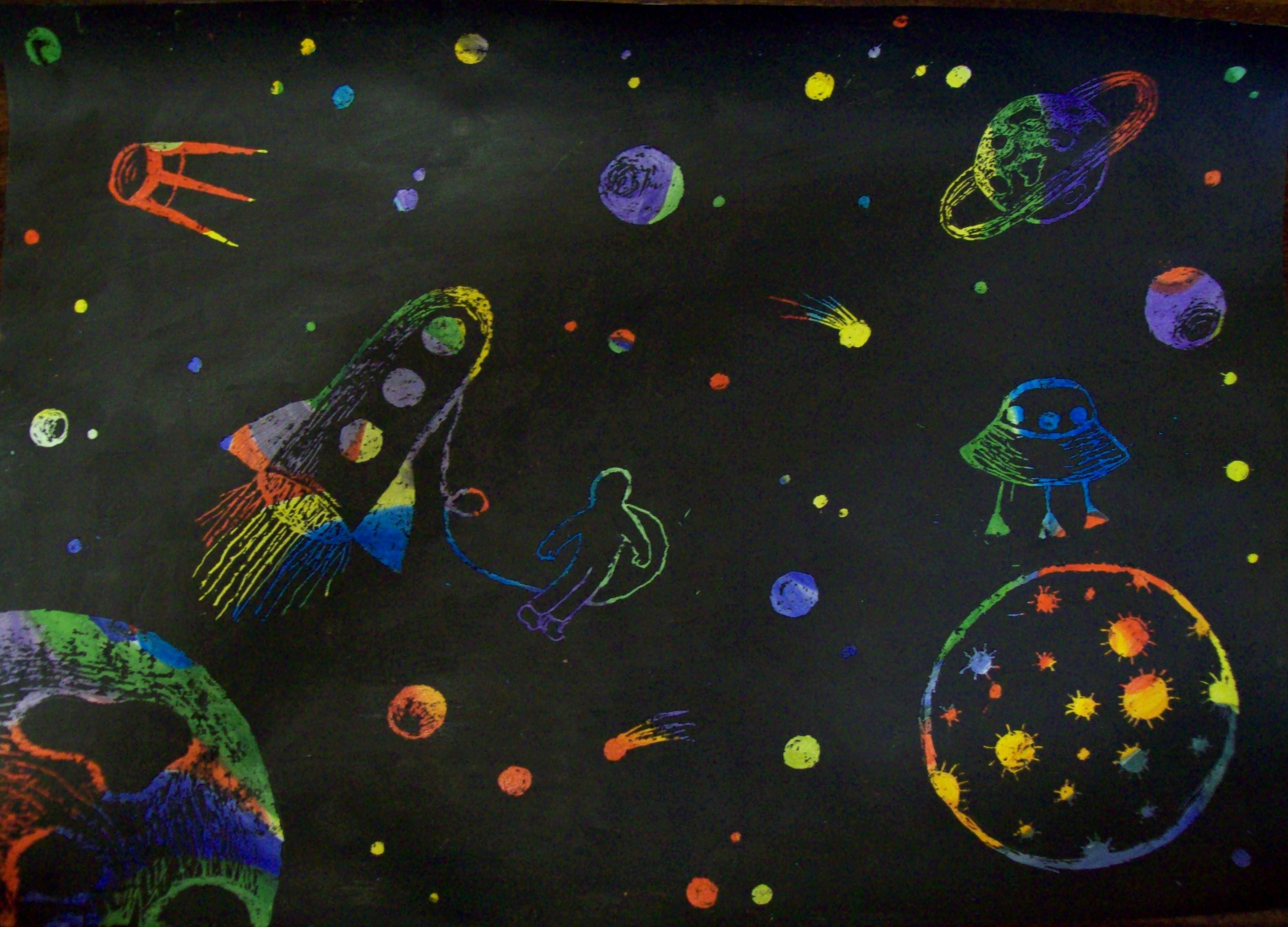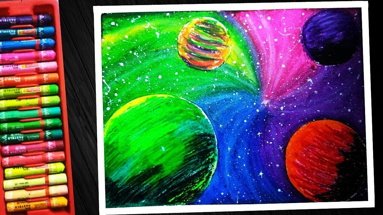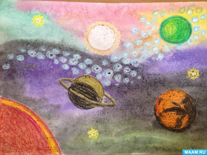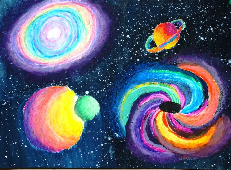 Рисование космос масляной пастелью для детей