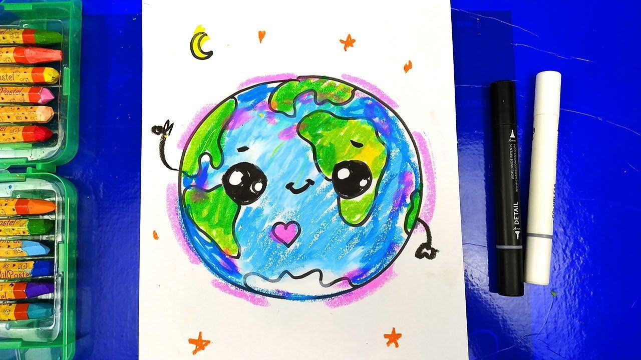 Земля рисунок карандашом цветным