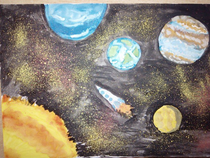 Космос в нетрадиционной технике рисования