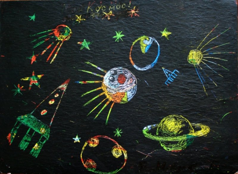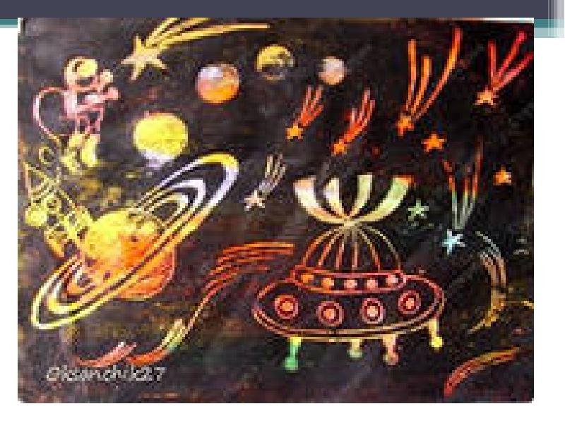 Техника граттаж для детей на тему космос