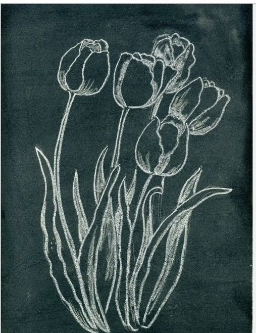 Тюльпаны мелом на доске