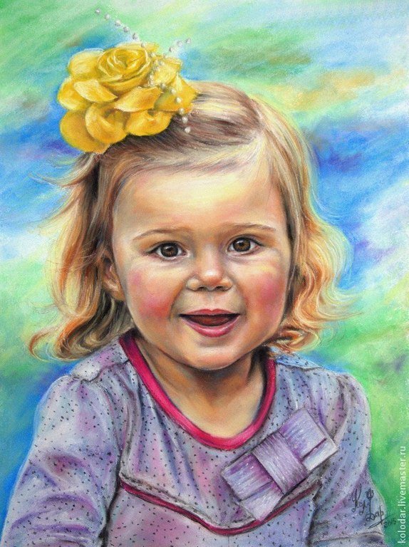 Детские портреты цветными карандашами