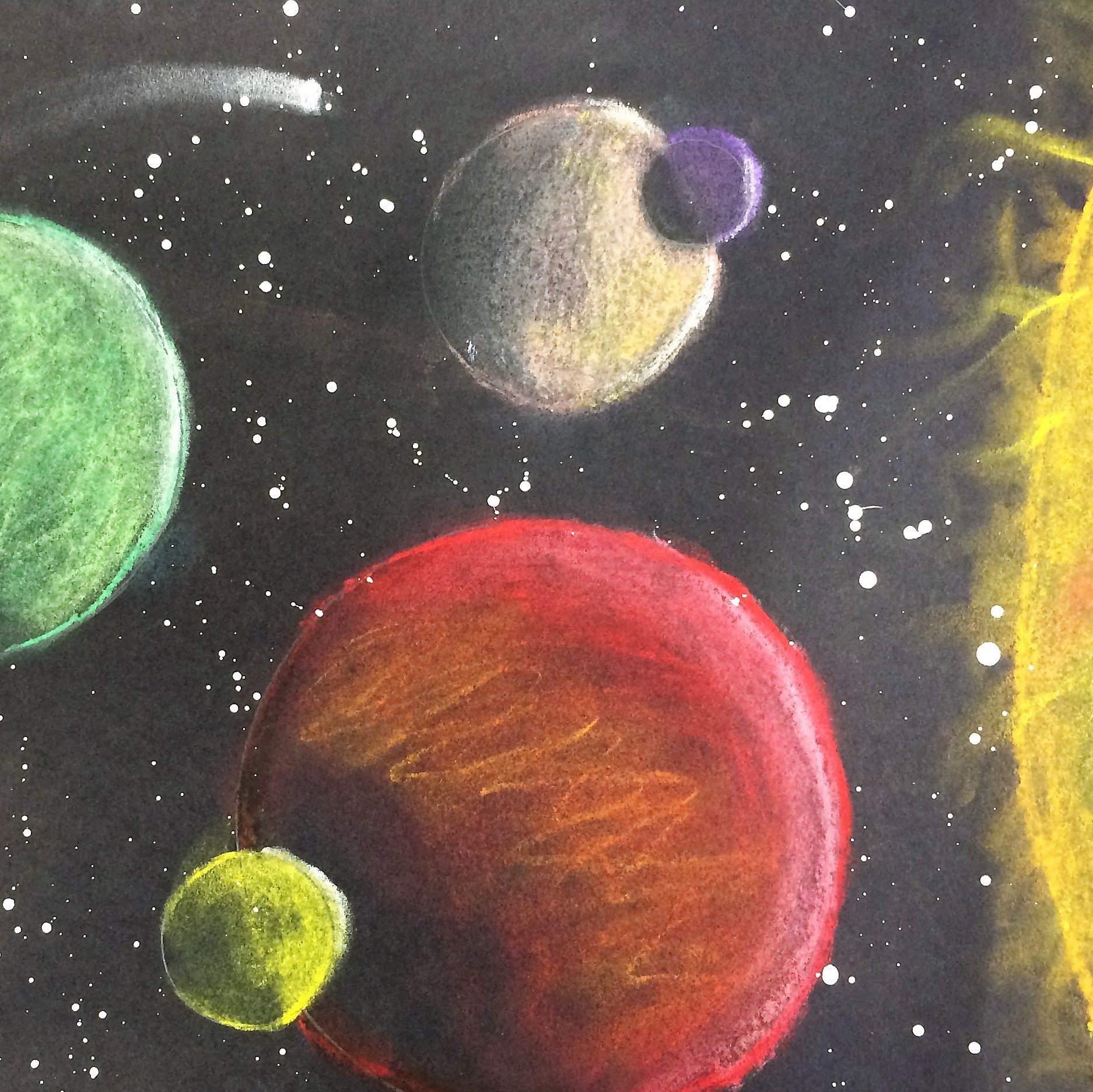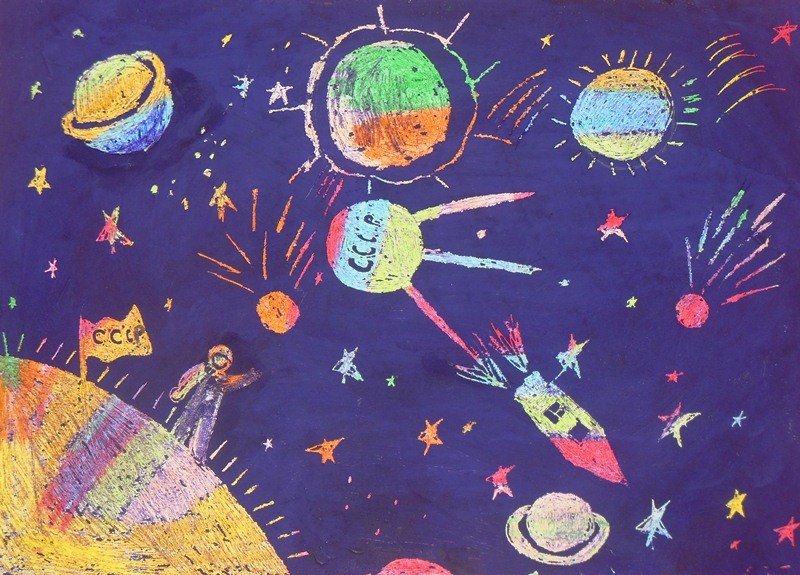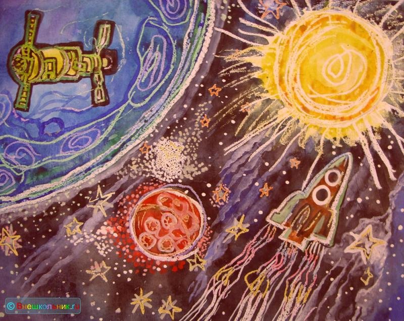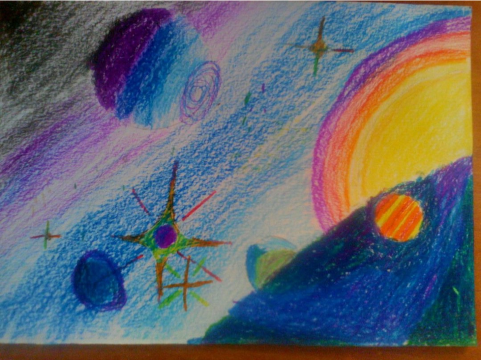 Космос восковыми мелками