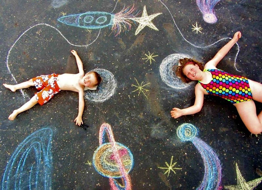 Космос мелками на асфальте