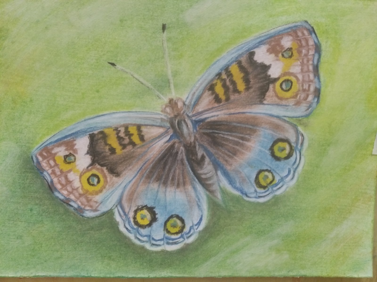 Бабочка акварельными карандашами