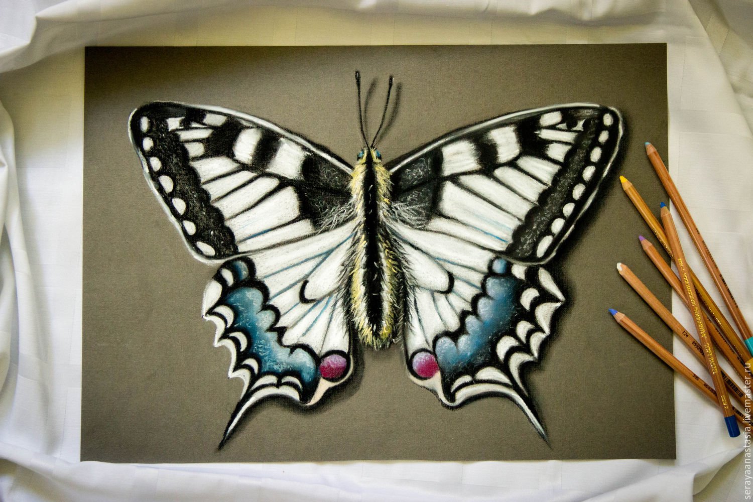 Рисование бабочки пастелью