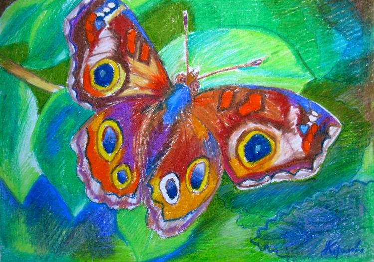 Бабочка масляной пастелью